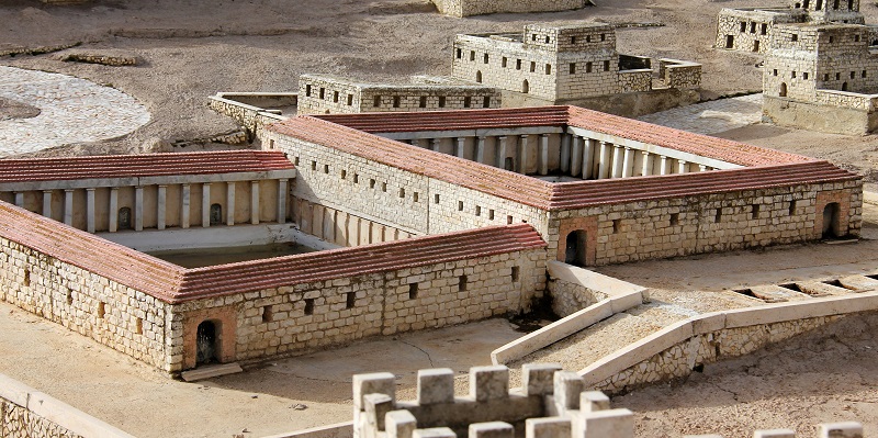 A képeken: A Betesda medencéi a korabeli Jeruzsálem városmakettjén, illetve a Betesda romjai a mai Jeruzsálemben